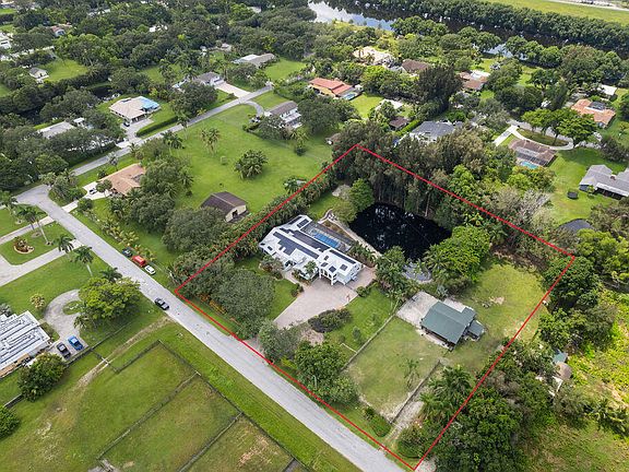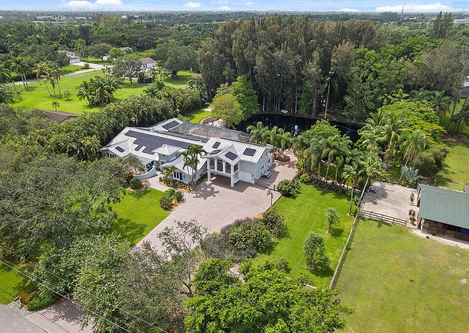 If you are looking for Shangri-La, look no further! Situated on 2.5 Acres of a Tropical Oasis, this home and property truly have it all! The 1/2 Acre filtered pond with fountain is surrounded by beautiful enormous pine trees offering a park like setting with lighted paver walk ways and gorgeous sitting area.There is also a 3 stall barn for horses with feed and adjacent air conditioned tack room/office as well as chicken/hen coops and room for ring and paddock! Features include, Metal Roof, Solar Panels, Newly resurfaced Resort Style Saltwater Pool with new heater, slide and Hot Tub! Outdoor Kitchen, gas fireplace, Complete Impact Glass Windows, Gourmet kitchen with large island, Newer Bosch Induction stove top, Newer Refrigerators, New Bosch dishwasher, new LG mega capacity washer and dryer, new Napoleon gas grill! Smart toilet in Master, Newly Renovated guest bath, treated barn, Smart home with security AV WIFI, new tank less water heaters, 5 New AC's zoned separately, new aluminum pool enclosure, 25 year warranty on solar panels, interior and exterior of home recently painted. This home and property have been exceptionally maintained and offers a unique floor plan with Master Bedroom secluded on 2nd level offering 2 private balconies, 1 overlooking the breathtaking view of the pond and park like setting. Also featuring cabana room/bedroom with full bath! Located minutes from HARDROCK RESORT AND CASINO, SAWGRASS MILLS MALL. Conveniently located near I-75, I-95 and Turnpike, shopping, restaurants & world famous beaches. PBI AND FT LAUDERDALE airports nearby! Schools have been A Rated consistently! Great for entertaining, wedding venue, horse boarding, Airbnb or simply your own private SHANGRI-LA!