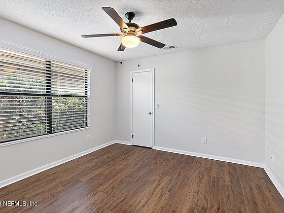 Welcome to 9850 Paddlewheel Court, located in the desirable Mandarin community of Sugar Mill. This single-family home is move-in ready, with new paint, new lighting fixtures, updated kitchen with stainless appliances and quartz counters. Beautiful wood laminate floors throughout the main living area. The family room features a vaulted ceiling and a cozy wood burning fireplace. The dining area is just off the kitchen. Spacious owner's suite with vaulted ceiling, walk-in closet with custom built-in. Owner's bath with extended cabinets and walk-in shower. Large secondary bedroom with walk-in closet. A flex room with walk-in closet, makes a great home office or could be used as 3rd bedroom if you add doors. Enjoy your morning coffee on the screened enclosed lanai that overlooks the lake. Located on a quiet cul-de-sac with a long driveway. You'll enjoy the two pools, and tennis courts that Sugar Mill has to offer, along with a low HOA. Roof, HVAC & Water Heater - 2016. Located on a quiet cul-de-sac with a long driveway. You'll enjoy the two pools, and tennis courts that Sugar Mill has to offer, along with a low HOA. Roof, HVAC & Water Heater - 2016. Close to major shopping and restaurants. Easy access to I295.