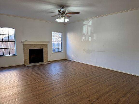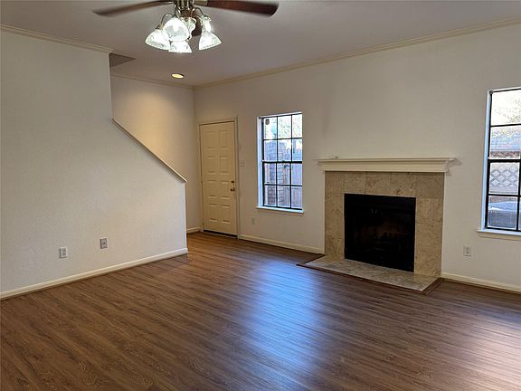 Welcome to 9850 Pagewood, Unit 1001, a charming townhome in a prime location in the Westchase Forest Townhome community. This inviting home features vinyl plank flooring throughout, tile in the bathrooms, & wood-tread stairs—completely carpet-free for easy maintenance. First floor includes kitchen, dinning, spacious living room w/wood burning fireplace & half bath. Oversized primary bedroom, boasts wood burning fireplace, a walk-in closet and additional storage space. The primary bath offers two single-sink vanities and a jetted tub/shower combo for ultimate relaxation. Fully fenced private patio is perfect to entertain or relax. Tucked away in a desirable back corner of the community, this unit offers convenient guest parking and is just steps from the sparkling community pool. With easy access to major freeways and located near Sneed Elementary, this home is perfect for both comfort and convenience. HOA dues include water, sewer, trash, and exterior building insurance.