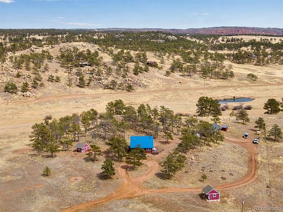 Check out this beautiful mountain paradise with no HOA! This property, known as the coveted "Blue Bird Ranch," features 8.59 acres with snow capped mountain views, ponderosa pines, gentle slopes, a large garden, and horse amenities. The adjacent 25.9736 acres are also available (9850 Lot 2 Red Mountain Rd, Livermore, CO 80536 - MLS# 5954839). The cozy cottage is paired with two finished accessory buildings, a large outbuilding, and a custom chicken coop. Wildlife abound on this property, so sit on the covered front porch and watch the deer graze, watch the elk roam about, and listen to the mountain bluebirds sing a song. Both accessory buildings were recently constructed (2020), the house and garage/barn have new roofs (2024), new exterior paint (2024), and a fresh finish on the porch and deck (2024). Live out your mountain living dreams while still being close to amenities: Cheyenne, WY, Wellington, CO, and Ft. Collins, CO, and Laramie, WY are all just a short drive away. The property line son the county map are incorrect. A recent survey is available to show correct property lines. This is the perfect property to get away from the hustle and bustle and take in peace and quiet. Stargazers can take in the breathtaking night sky unabashed by light pollution enjoying views of stars, planets, and the milky way. The listed square footage includes both finished accessory buildings. Whether a full time residence or a just weekend getaway, this property will steal your heart and