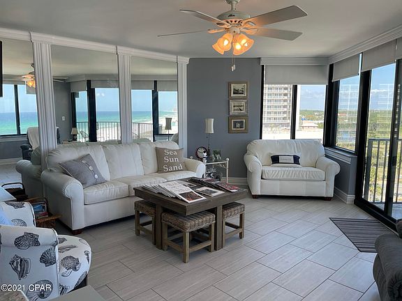 When a recipe includes all ingredients and directions to produce an amazing meal... you have to first enjoy and then share. With that said... Team LeChef has a scrumptious feast for you. Very beachy, very spacious and very well appointed. Amazing views of the Gulf and of the expansive skyline looking eastward down the PC Beach and the Gulf of Mexico. This condo was not only renovated, but it started with being totally gutted and everything replaced including some of the studs. So many recent upgrades including electrical, HVAC and hot water heater all in 2014. Seller renovated for his own pleasure and piece of mind and not from the hurricane. Great news here! Spectacular new kitchen and all appliances with breakfast bar, beautiful tile flooring, pocket doors, new top of the line window