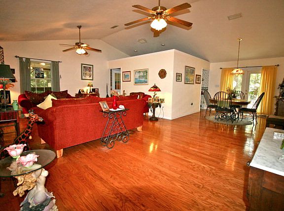 This charming home, nestled in a gulf hammock, offers quiet & peaceful Florida days! Shaded by mature oaks, magnolias & cedars, you'll want to spend your days relaxing on the large open deck watching the deer that graze just outside the fence! Hardwood floors in great room/dining room shine like brand new. Lots of options for entertaining, including a 500+ sf screened porch w/tiled floor. Separate-entry conditioned room could be office or studio. Want more land? Buy 10 acres next door, too! Paradise--and only 10 minutes to Gulf of Mexico fun!