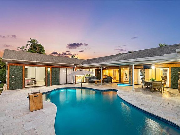 Welcome home! To this 5 bedroom, 3 bathroom single family pool home nestled towards the end of the road with only 20 homes leading to a cul d sac situated on over a 27,000 sqft lot with around 180 ft of water. A perfect 10 for entertaining! Upon entrance 7 large windows deliver natural light and open the view of a free form pool and around 800 sqft of outdoor partially covered living area. This home offers 2 cozy docks with amazing Water views built in bar lounge area, living room off of kitchen, formal dining room, 5th bedroom currently being used as game room / office. You must see this home to appreciate it.