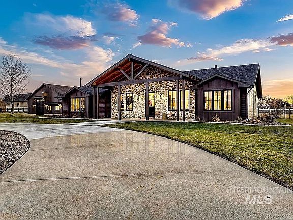 Remodeled and thoughtfully renovated in 2024 from top to bottom! Experience this luxury equestrian estate on 2.5 fully fenced & irrigated acres, seamlessly blending modern elegance with functional design. The completely reimagined 2,472 SF home features a guest wing, two offices, two fireplaces, and a his & hers master closet with custom built-ins. The gourmet outdoor kitchen and expansive covered patio create an entertainer’s dream. The 3212 sq ft 1/2 new and 1/2 renovated shop boasts car lift(negotiable), sealed concrete floors, a half bath, and five oversized garage doors (including two 12 foot tall doors), including RV-ready 13’ ceilings. A brand-new barn with three stalls, power, water, and corrals connects to the HOA-maintained equestrian trails surrounding the neighborhood. Located minutes from downtown Boise, shopping, the airport, and hospitals, this elevated property offers turnkey luxury and years of worry-free living. HOA fees of $1000 cover all irrigation, including the pasture.