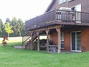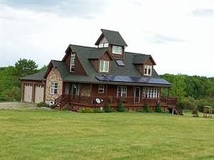 A few words come to mind when you first walk into this custom built log sided home..."I want it!". You will also see the quality of construction, the peaceful setting on 10 beautiful acres, wrap around porch and deck, full finished walk-out basement with kitchenette, 12 solar panels for those eco friendly and radiant floor heating throughout. This home was built with passive solar in mind with large windows facing east and south with the porch on the south side to protect from the summer sun. Just wait until you see inside with a first floor master bedroom suite (currently being used as a library), a loft master bedroom suite, beautiful wood floors, ceilings and walls and a stone gas fireplace in the livingroom. There are many custom features including a built in bookcase, storage benches, and a 3rd floor cupola!...you will just have to call to see them all! Also all appliances are included so make your appointment today while this one of a kind property is still available!