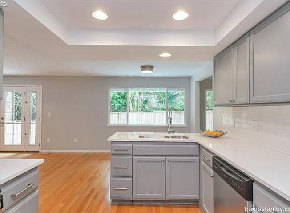 Stunning remodeled single level in desirable neighborhood! New roof, vinyl windows, electrical panel and more! 4 bedrooms PLUS den/formal dining room. High end quartz in kitchen with white subway tile, SS appliances (fridge included), granite in bathrooms w/ modern sinks, new tile showers, large master suite w/ double closet. Oversized corner lot, fresh landscaping. Great schools and proximity to new shopping area (New Seasons) & fwy.
