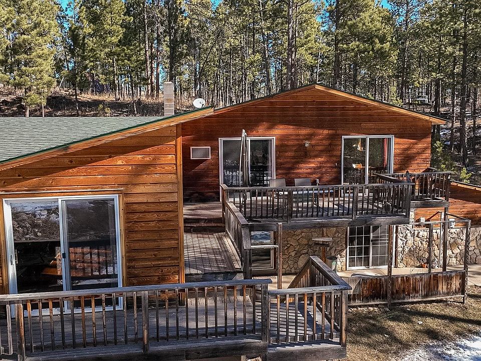 Nestled in the woods just off Sheridan Lake Road. The main level of the home features vaulted ceilings, multiple access points to the great outdoors, wood stove, both the living and family rooms, the kitchen, dining room, 2 bedrooms and 1 full bath. The basement includes another wood stove, master bedroom, 2nd bathroom, laundry room and access to the garage. The wooded 1.46 acre lot includes a barn/shed. This home is an estate and is being sold as is. Listed by Suzette Pickar of West River Realty, LLC, 605-415-5331.