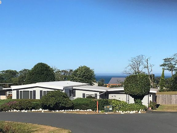 OCEAN VIEWS from this well maintained home in the desirable 55+ community of Camellia Park! Plus you OWN the land! This cute beach manufactured cottage has 2 bedrooms, 2 baths PLUS a possible bedroom & full bath off the garage! Additional living space with added family and sun rooms. Beautifully maintained yard with room to garden and enjoy the ocean views! Even has room for RV or boat! A great fisherman's retreat and priced to sell!!!