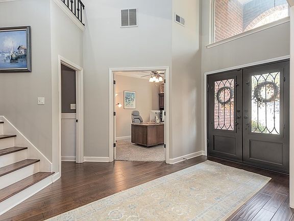 Meticulously maintained 4 bedroom, 3.5 bath home on 300+ acre Garner lake. Open Floor plan perfect for entertaining. Primary & second bedroom/office down. Hardwood floors down. Kitchen features custom cabinetry, granite counters, large island & all new KitchenAid appliances. Hearth room with stacked stone remote controlled fireplace. Primary suite with tray ceiling along with primary bath featuring heated floors, double vanity, jacuzzi, separate shower and spacious walk in closet. Grand 32x20 bonus room up with bar, full bathroom and walk out balcony with Trex decking overlooking the lake. 3 tier decking. Generous covered patio & decking leading to the paved sidewalk to your boat/swimming area. Laundry room & half bath down recently renovated. Luxury steel double front security doors recently installed. New Lighting in dining room & entry. Generac whole house generator. New light switches. Fish Feeder. Neighborhood park and tennis courts. Very involved HOA with seasonal activities.