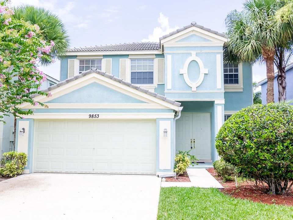 Welcome Home to this beautifully appointed 4 bedroom, 2.5 bathroom home in Wellington's premier resort style community, Olympia. Enter to behold a bright, open floor plan perfected with travertine flooring throughout, set on the diagonal. Your updated gourmet kitchen offers new stainless steel appliances, custom cabinetry, granite countertops & backsplash. Step outside to discover a tranquil backyard area, professionally landscaped and fully fenced. The second floor features four spacious bedrooms with laminate wood flooring throughout. Unwind in your magnificent primary bedroom suite with two walk-in closets and luxurious bathroom. Olympia is nestled on 240 acres surrounded by lakes and wetland preserves. The community offers numerous resort style amenities. The private Mediterranean clubhouse is the focal point of the community. Contained within the clubhouse are numerous meeting rooms, a large great room, a fitness center with child's play room and an indoor basketball and volley ball court. Attached to the clubhouse is a large portico with a screened in patio and large water feature. The clubhouse also has an extensive outdoor patio with tables and chairs. Surrounding the clubhouse is a 10 acre lakefront recreation area. This area contains 3 Tennis courts, 2 pickleball courts, outdoor basketball and volleyball courts, a large community playing field, a children's play area and a wetland preserve. Throughout the year the Olympia Master Association sponsors family and adult events for all to enjoy.
