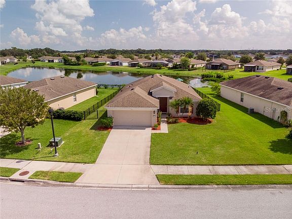 Professional Pics coming soon! This true 4 bedroom home is PACKED with features & sure to please... NEW wood plank flooring throughout, NEW interior & exterior paint, NEWER SS appliances & granite counters w raised wood-panel cabinets in kitchen. Fully fenced yard for littles & furry friends to play safely in, overlooking a natural lake setting. Move-In Ready!! Harrison Ranch features a 24-hour gym, heated junior Olympic pool and over 5 miles of nature trails! An activities director is also on-site, putting on fun events for young family members young & old. Tampa, St. Pete, and Sarasota are all within 45 minutes, making this a perfect, central location. Harrison Ranch offers you a beautiful community and lifestyle you can truly enjoy!