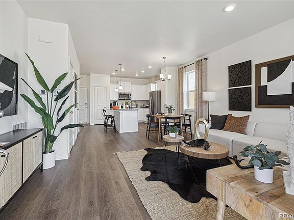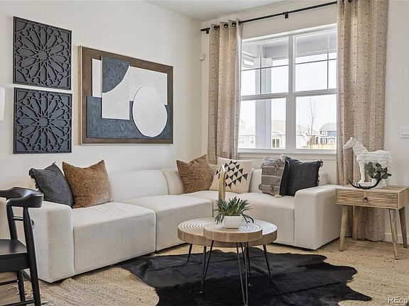 Immerse yourself in the allure of the Augusta paired villa at Settlers Crossing! This 3-bed, 2.5-bath haven spans 1,503 sq ft. Step through the covered front porch into a stylish living area, complete with a powder bath for convenience. The open-concept kitchen, dining nook, and living area provide an expansive space tailored to your lifestyle. Upstairs, discover the comfort of the large primary bedroom with a walk-in closet, dual vanity sinks, and a stand-alone shower. Enhancing practicality is the second-floor laundry room. Designed for refined living, the Augusta layout maximizes bedroom sizes and invites an open concept on the main floor. Revel in the local amenities of Commerce City, proximity to Denver International Airport, and community features such as parks and trails. Enjoy peace of mind with a home warranty available. ***Estimated Delivery Date: February. Photos are representative and not of the actual home.***