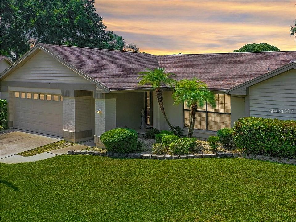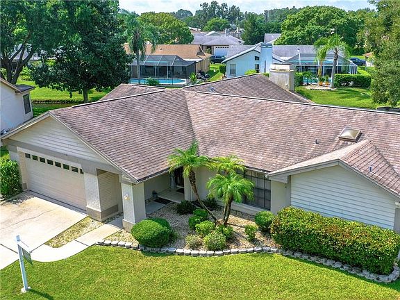 Best location in Trinity without the high taxes or CDD fees! Fairway Springs is an established community close to the brand new shopping center at Mitchell Plaza, and in the most sought after school zones in Pasco. This 3 bedroom, 2 bath home is one of the largest floor plans in this development with a wood burning fireplace and located on a desirable pond lot with magnificent views of the water and surrounding conservation. Kitchen is located in the center of the home, with a Living room/Dining room combo off the master bedroom. Master bedroom has its on bathroom with large walk in closet. Family room has the wood burning fireplace and split bedroom floor plan with the 2 bedrooms and bathroom. French doors take you out to the large screened in lanai to enjoy your water views and the breeze from the pond. This home is ideal for entertaining. Lots of natural light and windows throughout. Freshly painted cool deck on lanai and AC is replaced in 2018.