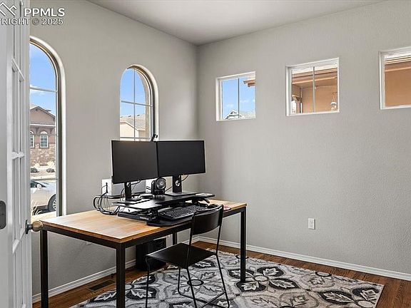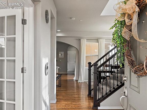 Impeccably Maintained Home in Sought-After Wolf Ranch with Breathtaking Mountain Views! Welcome to Awaken Drive, a stunning Covington Homes masterpiece! This pet-free, smoke-free home has been meticulously maintained by its original owners, making it feel as fresh as new. Thoughtfully designed with timeless charm, this home boasts rich wood floors, elegant architectural arches, and an abundance of natural light throughout. The oversized primary suite is a true retreat, featuring a spacious sitting area, a walk-in closet and a coat closet, plus a luxurious spa-like oversized shower. The open-concept main floor offers a dedicated office space, perfect for working from home, while the covered front and back patios provide the perfect spots to relax and take in the breathtaking mountain views. Located in Wolf Ranch and the highly sought-after Academy District 20, this home offers top-rated schools and a low-maintenance lifestyle with no lawn work, allowing you to enjoy all the community has to offer. Explore miles of scenic trails, spend the day at the resort-style pool, or take advantage of the nearby lake for paddle-boarding, fishing, and leisurely walks. With an unfinished basement featuring rough-in plumbing, you have endless opportunities to expand and customize. Tucked away on a quiet, picturesque street, this home blends comfort, quality, and a vibrant community—everything you’ve been looking for. Don’t miss your chance to own this one-of-a-kind home in Wolf Ranch!