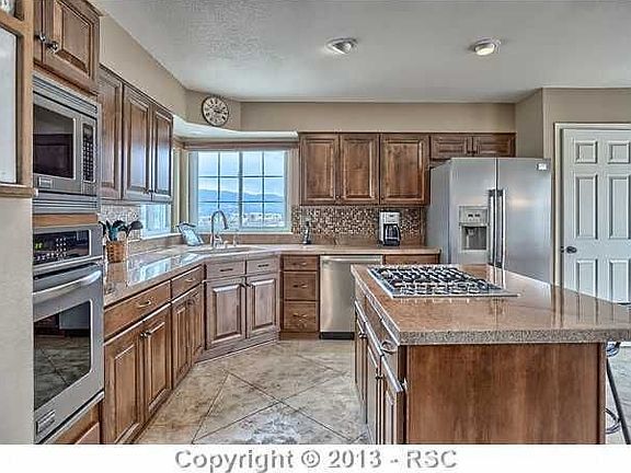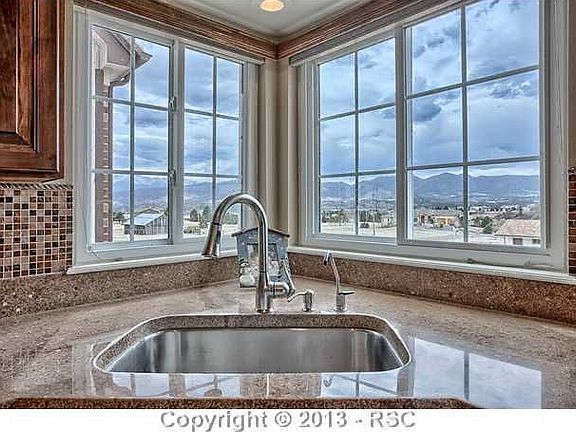 What a find! Country living in town! Located on 2 1/2 acres three minutes from the shops at Briargate. Spectacular Pikes Peak and Mountain Views. Beautiful updated brick and stucco home featuring new kitchen and 34 X 15 main level master bedroom suite with fireplace and five piece bath. Kitchen has stainless steel appliances and custom concrete overlay counters. Walkouts from kitchen and master bedroom to spacious deck with built-in hot tub. Beautiful new hardwood floors in living room & dining room.