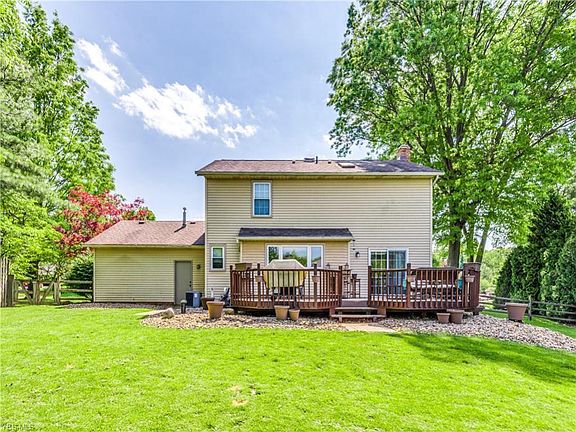 Wonderful home with nice curb appeal in great neighborhood in the Jackson School District. Convenient to both Akron and Canton, and also the schools. Inviting front porch. Family room with fireplace, lovely kitchen with oak cabinets, stainless appliances, abundance of counter space, pantry, and center island. Off the kitchen is the deck overlooking beautiful fenced in yard with paver sidewalk. Formal dining room with crown molding. Master bedroom on the second floor with private bathroom featuring walk-in closet, tub/shower, and make-up area. Two other bedrooms and full bath on the second floor. Bsmt. has two finished rooms (carpeted with trac lighting). Storage in bsmt./laundry area is carpeted with built in shelves, water softener, reverse osmosis system. Glass block windows. Windows and slider with aluminum wrapped exterior trim replaced in 2005. Central air 2002, and 90% efficient furnace 2004, 50 gallon hot water heater 2014. This home is a must see, and is in very nice condition. Home Warranty.