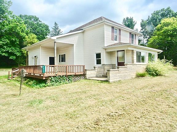 Classic Farm House with some surprises. This house has many additions and updates. It features 2 enclosed porch areas, one with a built-in fireplace and grill. There are heated tile floors in the kitchen and main living area. The Master suite was an addition complete with an open bath. You'll discover hardwood, title, laminate and carpet flooring through the house. Two of the bedrooms are upstairs. There is a lot to see and love about this house that sits on 1.5 acres.