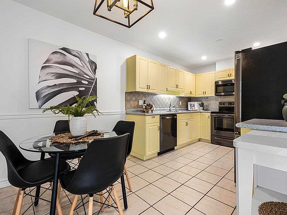 This is the perfect 2 bed 2 bath ground floor unit w/amazing bright space, mtn views, spacious floorplan & will check all your boxes! Tucked away for quiet & peaceful living, enjoy 1,159 sq ft, eat in kitchen w/black s/s appliances (2018), full dining room, spacious living room w/cozy gas fireplace & access to the backyard. The primary bedroom accommodates a king size bed, ensuite w/walk in shower (2018) plus 2 closets. Freshly painted throughout, tile & laminate flooring for easy maintenance, plus laundry room including extra storage. Quick access to HWY 1, shopping & District 1881 for all your boutique shopping & entertainment. Pet friendly, NO age restrictions, parking out front your door, well maintained strata & beautiful landscaping throughout the complex welcome you home.