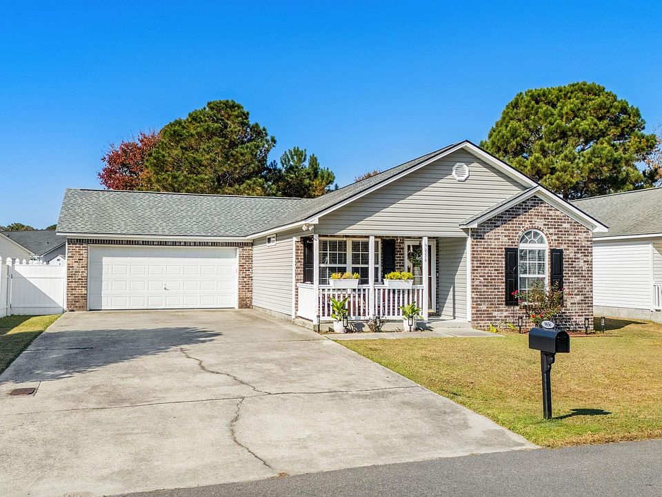Fresh, Modern & Stylishly Renovated—Move-In Ready! Welcome to this beautifully updated 4-bedroom, 2-bath single-family home in the highly desirable St. James School District! Completely refreshed from top to bottom in 2025, this property blends modern style with everyday comfort, offering a truly turnkey experience. Step inside to find brand-new LVP flooring throughout, custom interior paint, and thoughtfully selected light fixtures and ceiling fans that give every room a contemporary feel. The kitchen shines with granite countertops, updated cabinet paint and hardware, and a new sink and faucet, perfectly complemented by newer stainless steel appliances. The washer and dryer, only two months old, also convey! Both bathrooms have been transformed with modern vanities, mirrors, and fixtures, creating spa-like spaces. A newly enclosed Carolina Room adds approximately 130 heated square feet, ideal for a home office, media space, playroom, or whatever extra room you need! Outside, enjoy the privacy of a 6-foot fenced backyard, welcoming front porch, and the convenience of an attached 2-car garage. Major mechanicals—roof, hot water heater, and HVAC—were all replaced in 2023 for added peace of mind. Located in The Pines of St. James, you'll enjoy community amenities including a playground and basketball area. Even better, this home is just minutes from the Murrells Inlet Marshwalk, top-tier medical facilities, shopping, dining, and quick access to Hwy 31, putting the entire Grand Strand within easy reach. This stylish, fully renovated home is truly move-in ready—don’t miss your chance to make it yours!