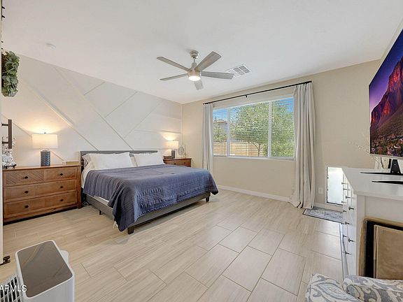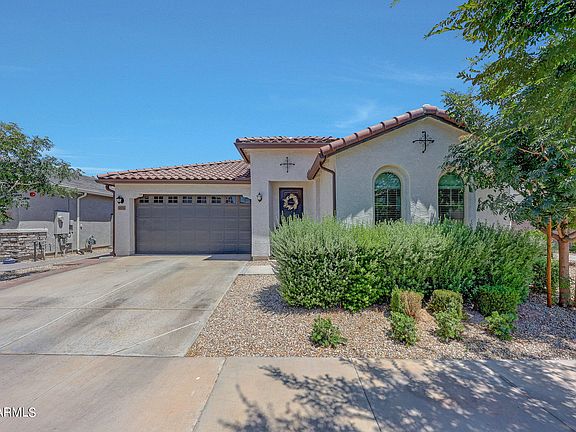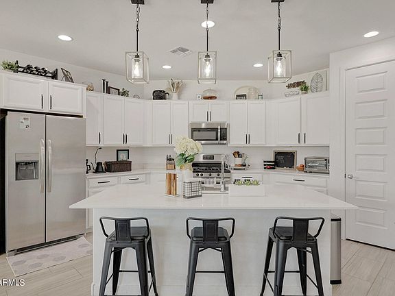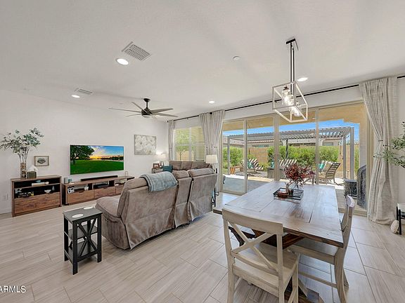 Newly built in 2021 and meticulously maintained, this is the home you've been waiting for! Nestled in the resort like community, Cadence at Gateway. Enter into the spacious open floorplan with no details spared including updated tile flooring throughout and decorative paneled walls. Gourmet chefs kitchen is appointed with stainless steel appliances, white shaker cabinetry, and quartz countertops. Primary suite with dual sinks, walk-in glass shower, and walk-in closet. Private low maintenance backyard with covered patio with travertine pavers, artificial turf and trees providing ample shade. Large flex room would make the perfect home office/ game room and laundry room upgraded too! Enjoy the community amenities including workout facility, dog park, play pool, spa, lap pool, cabanas, tennis, bocce, and volleyball