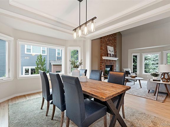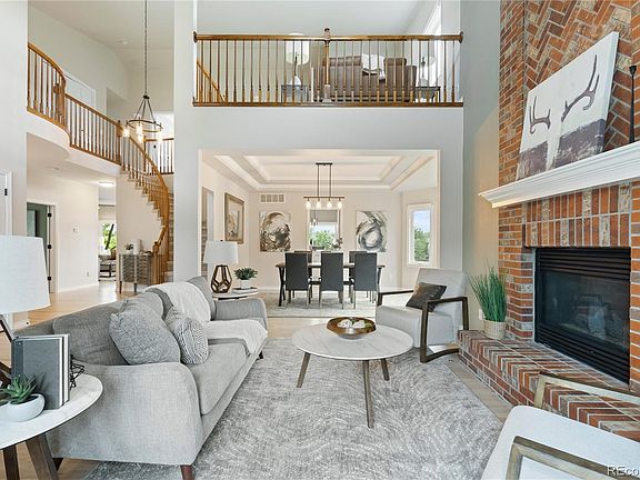 Welcome to this beautiful luxury home located in the highly coveted Mansion Hills community of Highlands Ranch. Offering breathtaking views and ample open space, this residence is a true gem. As you step inside, you are greeted by soaring ceilings and walls of windows providing an abundance of natural light, a main floor office, and a family room featuring a cozy fireplace accented with a brick wall and custom built-in shelves, creating a warm and inviting atmosphere for relaxation and entertainment. For formal entertaining, the elegant dining room showcases a coffered ceiling, adding a touch of sophistication. The newly remodeled kitchen is a culinary enthusiast's dream, featuring ample cabinets, Caesarstone countertops, a large island, and an eat-inkitchen. Prepare to be inspired as you cook and entertain in this remarkable space that overlooks the majestic Rocky Mountains. Ascend the dramatic staircase to the upper level, where the primary suite awaits. This luxurious retreat includes a sitting room, a gas fireplace, and a private balcony, allowing you to unwind and watch the sunset. Three additional bedrooms, are upstairs. One with an ensuite the others with a Jack and Jill bathroom, ensuring privacy and comfort for family members and guests alike. One of the desirable features of this property is the walkout basement, leading to an expansive backyard. As you step outside, you are greeted by sweeping city and mountain views, creating a picturesque backdrop for outdoor living and entertaining. Whether you envision hosting grand gatherings or simply enjoying tranquil moments in nature, this backyard is a true oasis. Don't miss the opportunity to make this exquisite property your new home.