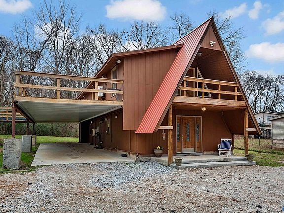 A river home is what dreams are made of. Here is your opportunity to own one of your own. 3 bedroom 2.5 bath, A Frame style home only .2 miles from the boat ramp on the Tennessee River! Imagine spending warm summer days with family and friends or making this your full time home. Stay inside and enjoy the warmth of wood accented walls or enjoy the outside living and entertainment features of the large second story porches! Covered carport large enough to store your boat.