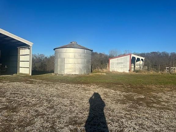 Complete Package- Acreage-Beautiful Timber- Three ponds for all kinds of fishing-Fenced for cattle or horses or camels(just kidding). Corral with a really good water hydrant. One small grain bin(would be a great gazebo). Large metal shed( machanics dream with over head doors a Buck stove for working late plus lots of electriical outlets for all the tools available- plus garage with double doors and opener plus a bonus of storage space. The view is really beautiful (great Bluff with changing trees and no neighbors close). Situated on a State maintained Highway. This 1.5 story home has a front porch to sit and enjoy the world as it passes by. Lots of room with hardwood floors and a lot of natural light to really enjoy. Very open floor plan with view clear through to the back of the home. Spacious kitchen with tons of counter space. The family room is in the back of the house for additional privacy. Right off of the Family Room is a laundry/powder room. Really good size. Fully unfinished lower level with a shop room + utilities + storage room(could even have laundry rm.)
