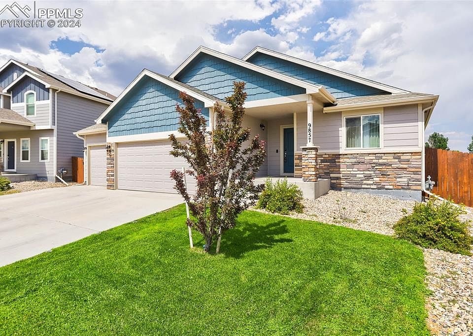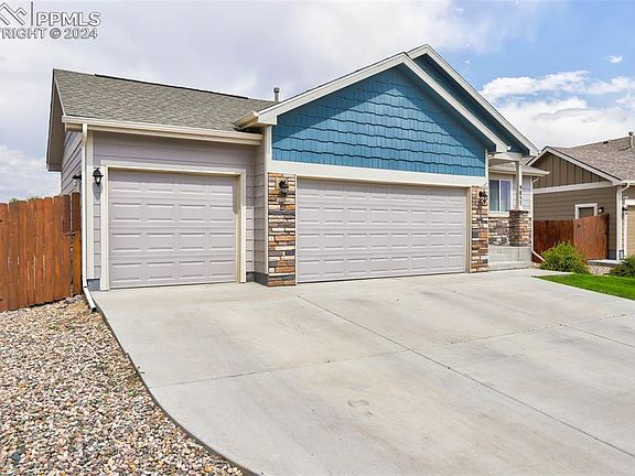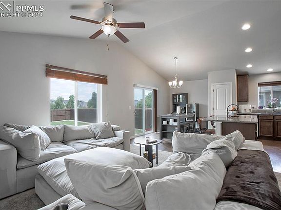 ASSUMABLE LOAN. Welcome to this beautiful four-bedroom ranch home located in Lorson Ranch. As you arrive, you're greeted by a front porch. Upon entering, you will find a spacious living room with large windows that fill the space with natural light. The kitchen is a chef's delight, featuring granite countertops, 42" cabinets, a pantry, and all included stainless steel appliances. The adjoining dining room provides access to a private patio and a large, well-maintained fenced backyard that backs onto open space. The main floor boasts a master bedroom with a walk-in closet, a five-piece bathroom, a separate tub, a shower, high counters, and tile flooring. Additionally, there is another bedroom and a full bathroom on the main level. The finished basement offers a large family room, two bedrooms with walk-in closets, a full bathroom, and a spacious storage area. This home also includes an A/C unit installed in 2019 and a new roof replaced in January 2024 due to a storm. This home features a three-car garage, providing ample parking and storage space. The gym in the garage is also included. Conveniently located and close to Fort Carson, NORAD, Peterson Air Force Base, Schriever Space Force Base, Colorado Springs Airport, shopping centers, hospitals, walking and hiking trails, and parks. Don't miss the opportunity to make this beautiful ranch home yours!