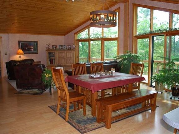 Oh, what a view from a fabulous Ranch! Acres of privacy overlooking Rocky Run Creek and pristine countryside. This Family friendly home features two levels of Living! Main floor includes a Great Room (Living room, Dining area & Kitchen with quartz countertops) with a wall of windows bringing the outdoors in; a Master Bedroom Suite, two more Bedrooms and bath, plus a laundry room. The Lower Level has been finished with a dramatic flair! Comfy Family Room highlighted by a Gas Log fireplace and a Bar area that rivals all party rooms with Custom Cabinets, granite counter tops and cork flooring. A Guest Suite accented with a tray ceiling, walk-in closet with Maple built-ins and a Spa Bath accessed from both Bedroom and Family Room. Enjoy nature and the beautiful view from the new composite deck. Quality built and amenities throughout! An attached two car garage plus a newly built 30x36 heated garage and a 30x24 Pole Building for extra storage. Be Matchless! - Meticulous!- Memorable! all within a short distance to Minocqua!