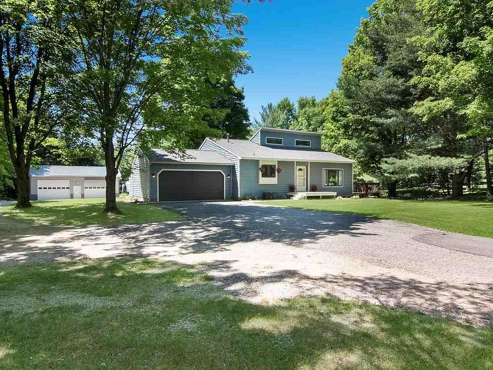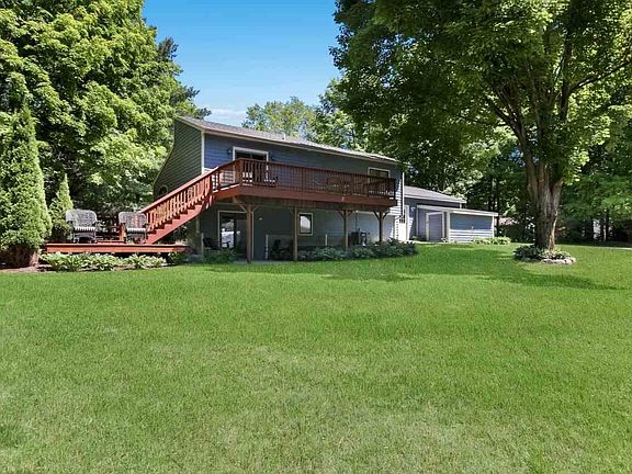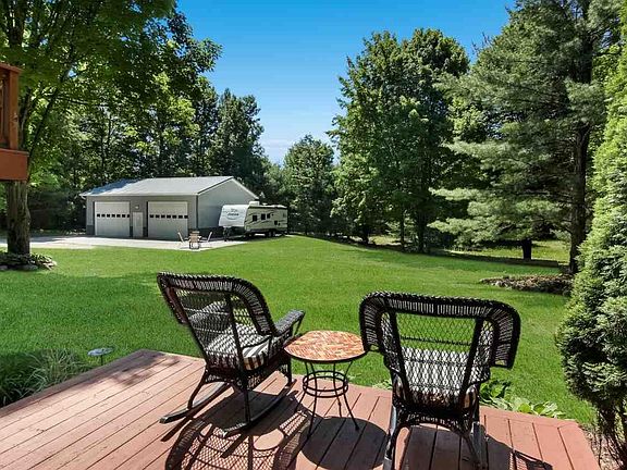 Storybook setting just down the road from the Crescent Shores Long Lake boat launch. Immaculate, charming home with attached 2 car garage, plus a 30'X40' insulated pole barn, all on over an acre of lovely, private land. Home features cathedral ceilings, wood floors throughout, with brand new carpet in the living room. Island kitchen with pantry storage and stainless steel appliances. Master bedroom has own balcony and 2 closets. The walkout lower level could be used as a family room or set up to use as 3rd bedroom. Multi level decks for enjoying your paradise and entertaining. Crescent Shores boat launch just down the road and also several beaches are just a few minutes away. Great neighborhood and no HOA!