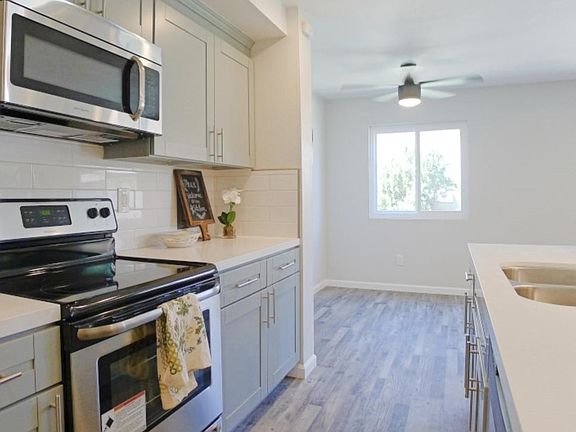 Come see this newly renovated two-story, 2 bedroom/1 bath condo! Featuring an open concept kitchen with quartz countertops, subway backsplash, and stainless steel appliances. This beautifully remodeled home also features gorgeous gray vinyl flooring throughout, carpeted bedrooms upstairs, recess lighting and dual pane windows. The master bedroom also features a walk in closet. Included in the property is one covered carport space, street parking, community laundry facility and a sparkling community pool. This condo is literally within walking distance of the Santee Trolley Town Center Shopping Mall and its' also close to the 52 freeway, tons of restaurants/shops, the Boys and Girls Club, and local schools. You don't want to miss out on this great opportunity to be in the heart of Santee!