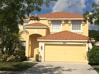 This house situated on the biggest lot in subdivision. Currently configured as 3 bedrooms with extended master suite that could be used as an office, sitting area or nursery, french doors to a balcony.Tiled floors downstairs and carpet upstairs. Resort-style community offers clubnouse with fitness room, indoor and outdoor basketball, tennis court and pool with tot lot and splash area. Right across the Mall at Wellington Green, Hospital, Wellington parks and A-Rated schools are withing walking distance.
