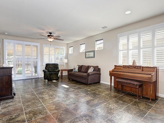 Stunning home in sought after Del Webb 55+ community shows pride of ownership throughout and has so much curb appeal. The Exterior was recently painted in 2019. This charming Randall floorplan is open and airy with tile flooring and a greatroom concept. Kitchen Boasts granite countertops and nice appliances, dining bar and a ton of cabinetry. This two bedroom two bath home has beautiful upgrades like plantation shutters, motorized window coverings and a Brand new shower unit in the master bedroom. Enjoy morning coffee on the lovely patio. The backyard is low maintenance with a stamped concrete patio and a retractable cover with beauituful plants and trees. This is a premier active adult community with a resort style clubhouse offering a pool and spa, workout room, sports court and more! Lots of parks and walking paths throughout the neighborhood as well. This home is truly a gem and offers wonderful amenities to enjoy for years to come.