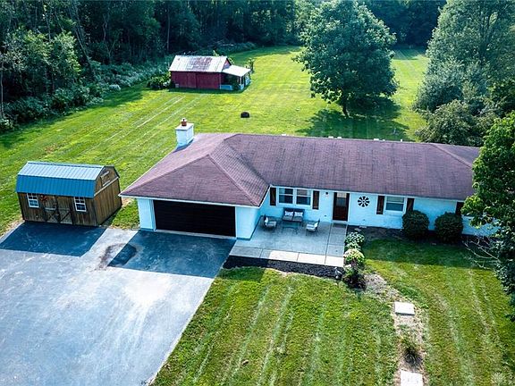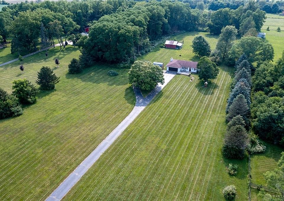Quiet 5-acre property on a no-outlet street in Northmont City School District. 3 bedrm, 2 full bath, attached 2-car garage move-in ready ranch on the market just in time to enjoy the apple trees and pumpkin patch. 23 x 20 barn with chicken coop, one animal stall and laddered overhead storage. 16 x 12 shed with two lofts. Convenient circular turnaround driveway.