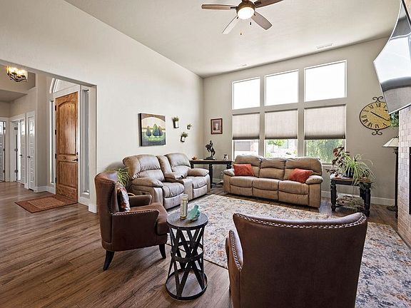 Great views of the Monument from the backyard of this beautiful home in Fruita. You will be pleased from the moment you drive up. The landscaping will catch your eye with several flowering bushes, when in season and in the backyard you will find a pond with waterfall that will have you mesmerized and relaxing with the push of a button. Inside you will find upgraded finishes throughout. Great kitchen with large island, a farmhouse sink, granite and quartz counter tops and an abundance of cabinet and counter space. All cabinets and drawers have soft closing hinges and there is a large pantry as well. In the living room you will find a gas fireplace that is bricked from floor to ceiling. The Master Suite will not disappoint, you will find a 5 piece bath with free standing tub, a double headed shower and direct access to the backyard covered patio. Entertaining and backyard BBQs with family and friends will be very enjoyable when you decide to make this your HOME! Close proximity to the Riverfront trail and easy access to walking paths in the neighborhood. This home has it all…