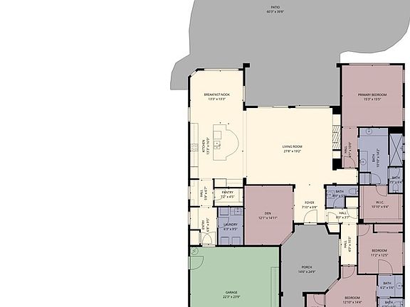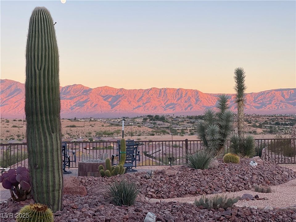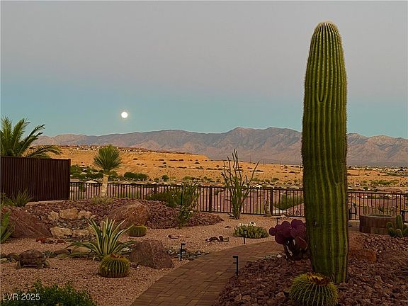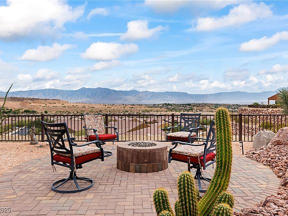 986 Buggy Whip CT offers 2,511 sq. ft. of beautifully designed living space with breathtaking elevated eastern views overlooking the city & Virgin Mountains. Featuring 3 beds, 2.5 baths, & a den on a .29 acre lot. The open-concept floor plan is enhanced by tile flooring throughout, creating a seamless flow between living areas. A gated courtyard entry with a charming pergola & water fountain sets the tone for the home's elegance, leading to a stylish leaded glass front door that welcomes you inside. The kitchen is a chef's dream, complete with stainless steel appliances, a vented range hood, and a large island with bar-top seating, perfect for entertaining.The living area showcases a custom entertainment center with an electric fireplace, adding warmth and style to the heart of the home. Additional highlights include: Paid-in-full solar panels-Fully fenced yard with custom landscaping-Rain gutters- Paver Walkways/Driveway, & Patios- & a Two-car garage plus golf cart garage.