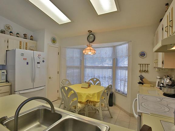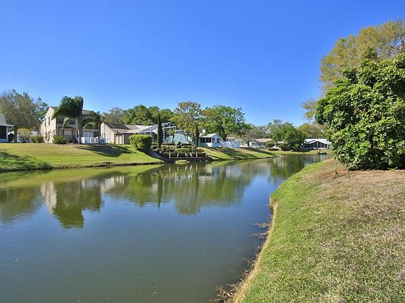 Charming home on a tranquil pond front lot. Step inside to a spacious & open split bedroom floor plan with cathedral ceiling. Tiled eat-in kitchen has updated appliances & pantry. Formal dining room has sliders to side patio. Large living room has corner gas fireplace & sliding doors to a tiled, glass enclosed Florida room with wall unit heat & air. Master bedroom has walk-in closet & sliders to rear patio. Tiled inside laundry room. Laminate flooring in foyer, dining room & 3 bedrooms. Other features: Covered & screened front entry. Oversized 2 car garage has screened sliding panels, sink, electric door opener & pull down attic stairs. Roof just 6 years old. Heat & air 6 years old. Water heater 2 years old. Sprinklers. Relaxing water views. Easy access to shopping & medical facilities.