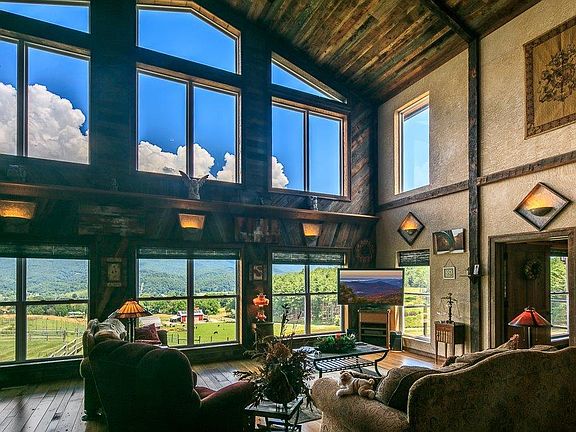 Grace Springs Farm....an exquisite privately owned mountain estate with over 574 acres that will exceed every expectation! Nestled in the foothills of the beautiful Appalachian Mountains in the upper corner of Northeast Tennessee lies an estate ranch with lush landscaping, fenced green pastures, stocked ponds, winding creeks, miles of wooded trails and breathtaking mountain views. Enjoy the unspoiled natural beauty from four stunning homes - The Main Manor home, the Retreat/Guest Quarters, the Lodge, and an Off-Grid Mountain Cabin at the highest peak with panoramic views. In addition there are several barns to accommodate a working cattle farm or provide equestrian facilities. The unique Main Manor home is constructed with locally sourced barn wood throughout and complimented with ...