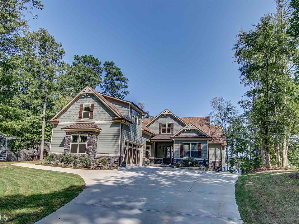 Stunning Craftsmanship Lake Home on DEEDED lot with approx 145 ft of Lake front! Walk into the front door to see a MAGNIFICENT VIEW! Large covered porch lake side with a wide screen TV and oversized fireplace for chilly evenings watching football. Inside features a Very open floor plan with high ceilings,laundry room on main and in the basement. Extra wide walkway leads to Double Covered boat dock,one slip now but can be opened up for 2 slips if needed. Upgrades Galore! Pictures tell it all! Home is on a BEAUTIFUL landscaped cul-de-sac lot with sprinkler system fed by the lake. Greenspace across the street for addded privacy. All this in a Neighborhood that features a Restaurant, golf course,Olympic size pool,tennis courts and 5 beaches!