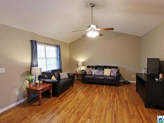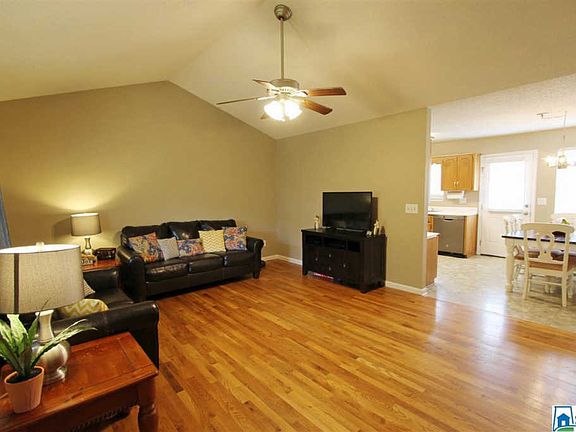 Attractive 3BR 2.5BA home on 1 acre in Pleasant Valley! This charming home offers TWO separate living areas with a Family Room with hardwood floors & vaulted ceiling on the main and a large Den downstairs with hardwood floors as well, plus its own entrance, half bath, dining area & kitchenette. Great layout for entertaining!! Would also work well for blended families, homeschool families, or anyone who works from home and needs a separate space for working. The well-equipped kitchen features stainless steel appliances, built-in desk, and Dining area. The back deck is a good size and is nice for BBQ'ing. The Master Bedroom has not one, but two closets, and the attached Master Bath has a garden tub and separate shower. Ample parking with an extra wide driveway and big double garage with lots of space for storage. Located less than 2 miles from Pleasant Valley Schools, and it's only about 5 miles to JSU. Call today for more information and your personal tour!
