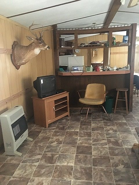 Nice two bedroom two bath trailer with large lot. great storage shed with garage door. a pole barn large enough to store party barge with a concrete pad. Some furniture included. Screened porch. Ceiling fans.
