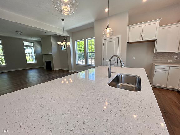 Stunning new home in the heart of Carmel! This home will delight with 3 bedrooms, 2 and a half baths, a two-car 10' ceiling finished garage and an unfinished 9' basement with a sump pump. The spacious main level features 10' ceilings and comes with an abundance of white quartz counterspace throughout and a large quartz kitchen island to gather around with friends and family. This impressive kitchen features Aristokraft white raised cabinets, deluxe kitchen island cabinets, luxury laminate wood flooring in main areas, stainless steel appliances and more! Relax in the study on the main level or the front porch! Owner's retreat comes with a refreshing super-shower, tray ceiling and a large closet. Our homes feature 9' and 10' ceilings throughout the entire home! Community pool and a pool house are our top amenities, and you will be within walking distance to the Palladium, Monon Trail, gourmet restaurants, Arts and Design District and all that downtown Carmel has to offer!