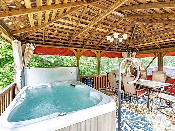 Don't wait to see this home. Priced to Sell ! Across from the Westfield River. 3-4 Bedroom 2 Bath Dormered Dutch Gambrel. (4th bedroom opened to make a Dining room). Stainless appliances, Kitchen Island to remain. Newer upgraded 200 amp service ~2021, Hot tub in Large Gazebo. Roll up Vinyl sides for Gazebo. Wood stove insert by Czar Energy, Newer siding with extra insulation and gutters in 2015, Hardwood floors installed in upstairs Bedrooms, All Doors replaces with solid doors, New Refrigerator New Dishwasher & Disposal all Installed 2023. Chest Freezer in Full Basement to remain. Shed and Winter grade heavy duty shelter to remain. Shed in "As-is" but emptied condition. Fish Pond with waterfall.