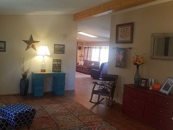 This is a must see Beautifully up dated MFH. Open floor plan. 3 Br 2Ba, living room, dining area, family room laundry room. Amazing, updated bathrooms, walk in closet in the master bedroom. Washer & Dryer included. Detached garage with shop. This property is located in the county. It has a well and is hooked into the Town septic. With power to the shop and two frost free faucets make it a great property for 4H and FFA project. A lighted woodshed. Dog run and fenced back yard for your pets It sits on a little over 1/3 of an acre. Landscaped and fenced back area. Room to park your RV. CERTIFIED WOOD STOVE FOR EFFICENT HEATING.