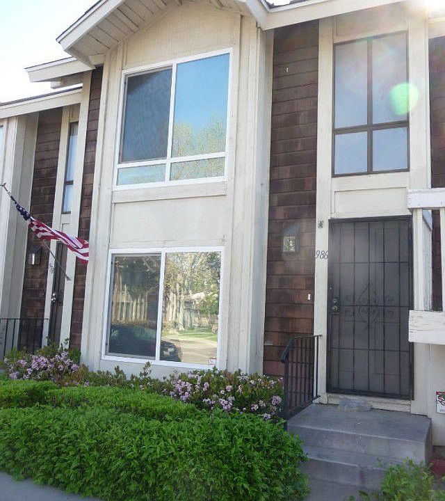 Very spacious 2 bedrooms 1.5 bathrooms Townhome, 2 car detached garage with access to the patio, new hardwood floors on first floor, new garage door motor and remotes, washer/dryer included, forced air/heating, smoke detectors, co2 detectors, double pane windows, dishwasher, stove, reverse osmosis system, refrigerator included, association pool and spa.