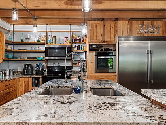 One Of A Kind Original Custom-built Home On A Beautiful, Wooded Ky Lake Waterfront Lot. Fully Furnished 4-bedroom 4-bath Home Provides Lake Views Throughout. A Living Kitchen Dining Combination And Primary Bedroom With Vaulted Ceilings And An Ensuite Bath And Closet Laundry Combination Plus One More Full Bath. Upstairs An Additional 3 Bedrooms And 2 Full Baths With A Kitchen And Living Space That Offers An Outside Entrance With A Private Porch Perfect For Potential Rental Income Or Additional Living Space. Multiple Porches And A Large Patio Equipped With Outdoor Kitchen Perfect For Entertaining. A Coy Pond, Hot Tub, 2 Firepits, And Gentle Slope To A Covered Dock Complete This Unique Property