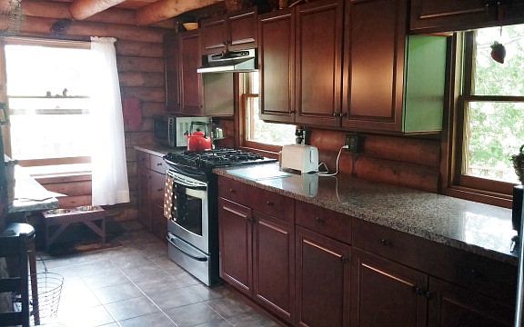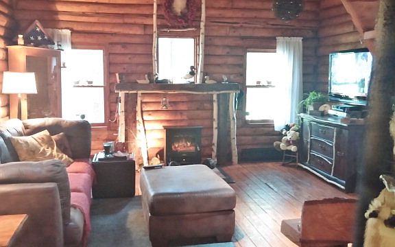 Riverfront!!!!! One of the kind paradise, tastefully decorated in rustic stale log cabin, with 2 and a half levels of living space , garage with the work shop, on Little Salmon River. It has 2+ bedrooms and 2 bathrooms. The property has over 18+ acres, some wooded across the river. River frontage is over 2000 feet long. There is also a pond, extensive stone walls and walkways, beautiful flower gardens and a small horse barn. The log cabin is 1000 square feet , plus the finished walk out basement, which has a bedroom, living room, kitchenette and the laundry. It is about 40 years old, extensively remodeled in the last few years.