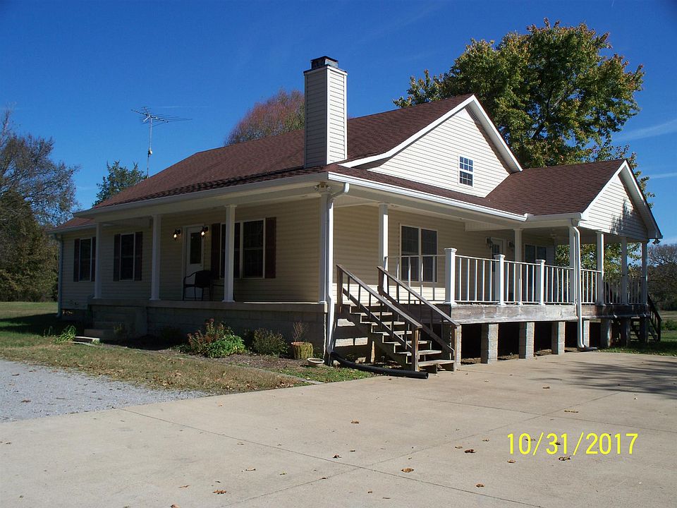 Pretty country setting on 7.37 acres. Home has a nice open floor plan w/ large spacious rooms. Hardwood throughout the home. Fireplace in the LR. Semi wrap around covered porch for relaxing or entertaining. Large detached 3 car garage. Land is balance of open and trees. Large floored attic space.