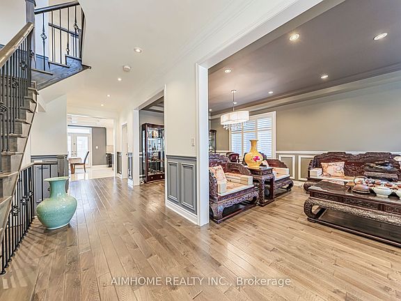 A Must See Home!See is believe ! showing 10+++! Premium 62ft Lot W/App. 3700 Sqft Above Ground Plus Fin Basement.9' Ceilings on the Main & 2nd Floor, Incredible Open Concept Layout, Private 3rd Flr Loft W/O To Balcony, Designed And Decorated By An Interior Designer For A Luxe Transitional Look! Upgraded From Top To Bottom W/Hand scraped Hardwood Throughout, Over 150 Pot lights, Wainscoting In Main Hall, Living/Dining & Upper Hall, Smooth Celling, Crown Moulding, Waffled Ceiling In Kitchen, Built In Entertainment Wall In Family Room, Grommet Kitchen W/Granite Counter,Centre Island, Backsplash, 2nd Flr Laundry,Luxurious 5 Piece Ensuite With Quartz Counters and Glass Shower, CVAC. No Sidewalk,Close To 404,Parks,Supermarket.new Costco.