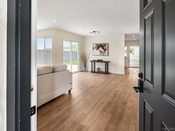 Welcome to this beautifully updated 4-bedroom, 2-bath home located at the end of a quiet cul-de-sac with stunning views of the Sweetwater Reservoir and San Miguel Mountain! This move-in-ready home features an open floor plan filled with natural light, dual-pane windows, and tasteful upgrades throughout. Enjoy quartz kitchen countertops, recessed lighting, ceiling fans in every bedroom, and vinyl plank flooring. The spacious layout is complemented by fresh interior paint, a newer water heater, updated electrical panel, and AC system. A robust, low-payment, financed solar system helps keep energy costs down, while the whole-house water softener and filtration system offer added comfort and efficiency. The home also includes washer/ dryer and drought-tolerant landscaping in the backyard with fruit trees—perfect for low-maintenance living. Don’t miss your chance to own this beautifully maintained property with views you’ll never tire of! 2.75% VA Assumable Option!